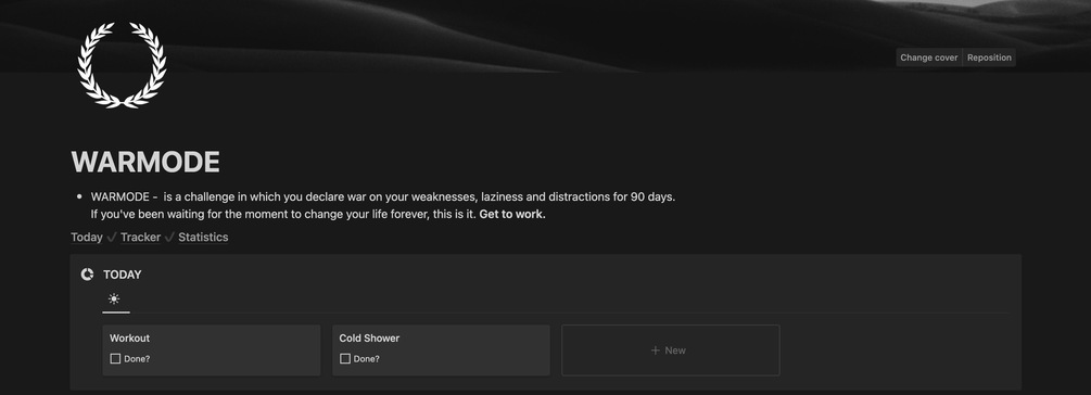 So install WARMODE in your Notion, set daily actions for the next 90 days (can be more or less) and start doing them with WARMODE every day without any excuses. Your life will change forever, I promise you.